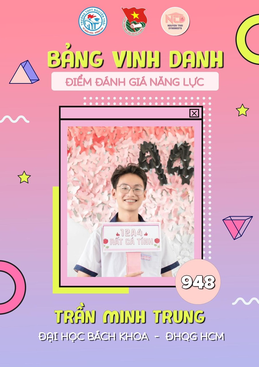 Còn bây giờ chúng ta hãy điểm qua những học sinh xuất sắc có kết quả thi và điểm đánh giá năng lực đáng tự hào nhất của gia đỉnh THPT Nguyễn Trãi nhé!